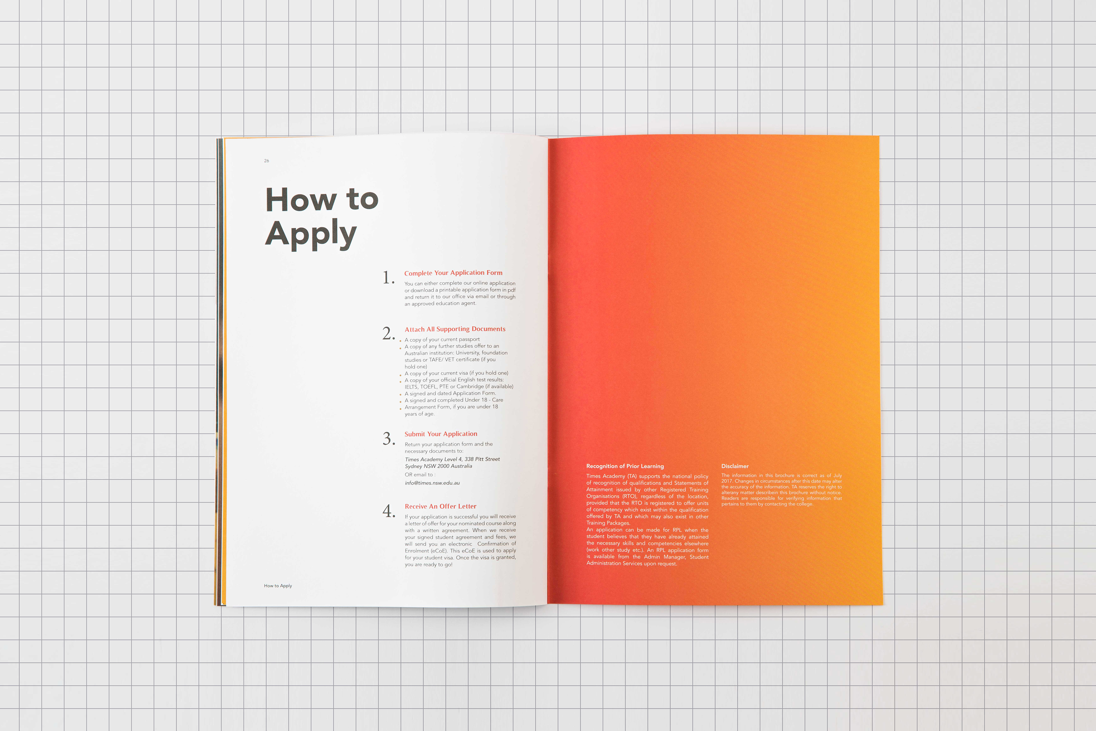 We used colour as a unique element to categorise each section in the brochure design. Unified typefaces are applied to demonstrate the energy as well as the professions of the academy. The new visual element works well with the brand colour as it enhances the visual aesthetic sensibility, and establishes a strong unified look.